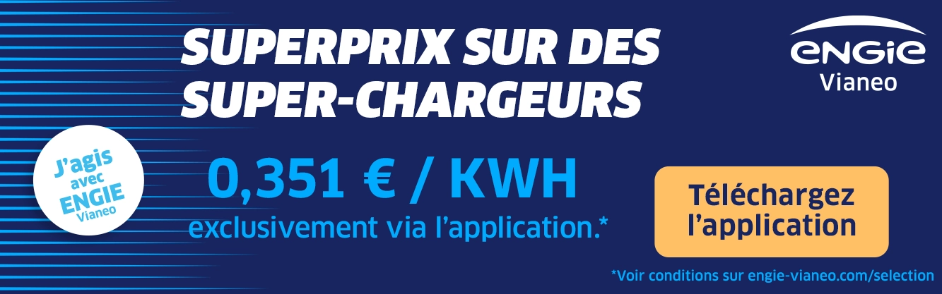 ** Electricité verte et française : pour la fourniture en électricité des bornes, ENGIE Vianeo achète l’équivalent de la quantité d’électricité consommée en Garantie(s) d’Origine émises par les producteurs français d’énergie renouvelable. Une Garantie d’Origine certifie que l’électricité a été produite à partir d’une source d’énergie renouvelable et injectée dans le réseau électrique.